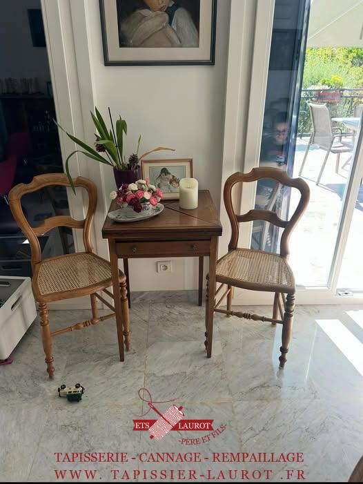 Le cannage de chaise est une technique traditionnelle qui consiste à tresser des fibres naturelles (rotin, paille, raphia…) pour former l’assise ou le dossier. Avec le temps, ce maillage peut se détendre, se casser ou s’user, rendant la chaise inconfortable et fragile. Notre atelier est spécialisé dans le recannage de chaises, qu’il s’agisse d’une restauration à l’identique, d’un remplacement complet ou d’une remise en tension. Chaque intervention est réalisée à la main, dans le respect du savoir-faire artisanal, afin de redonner à vos chaises leur confort, leur solidité et leur élégance.